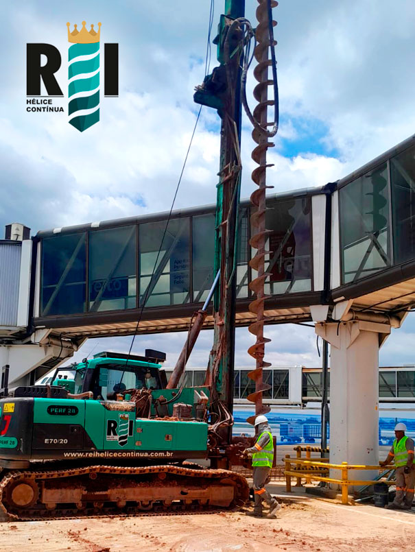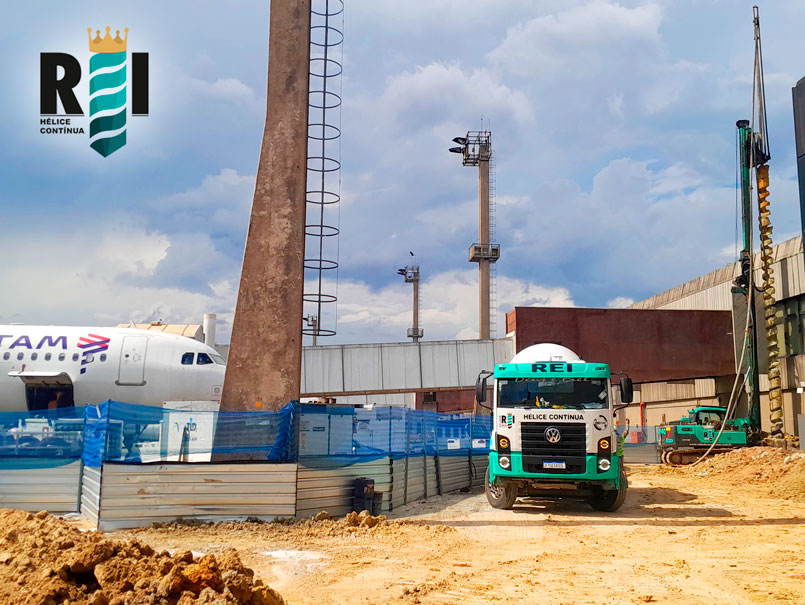 Projeto de alta complexidade e logística. A obra foi executada com o aeroporto em pleno funcionamento, exigindo um planejamento minucioso. Durante a execução, houve a necessidade de desmontar e montar o equipamento repetidamente devido ao fluxo de passageiros nas passarelas de embarque e desembarque. O serviço da Rei Hélice foi realizado em turnos diurnos e noturnos, garantindo produtividade constante, sempre com o Pacote Solução fornecendo concreto durante toda a obra. Execução concluída com sucesso!