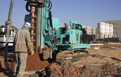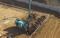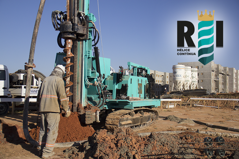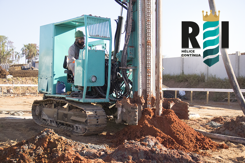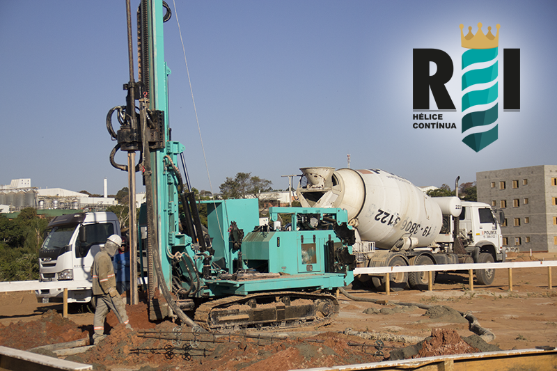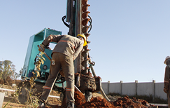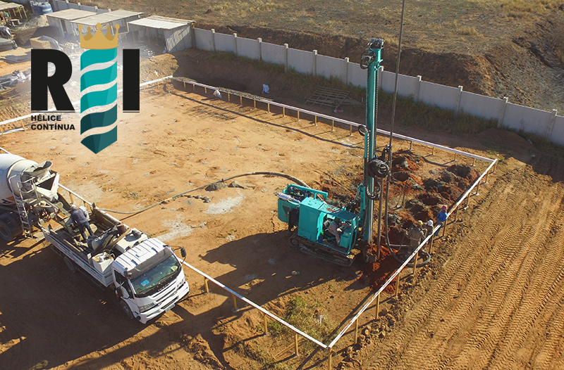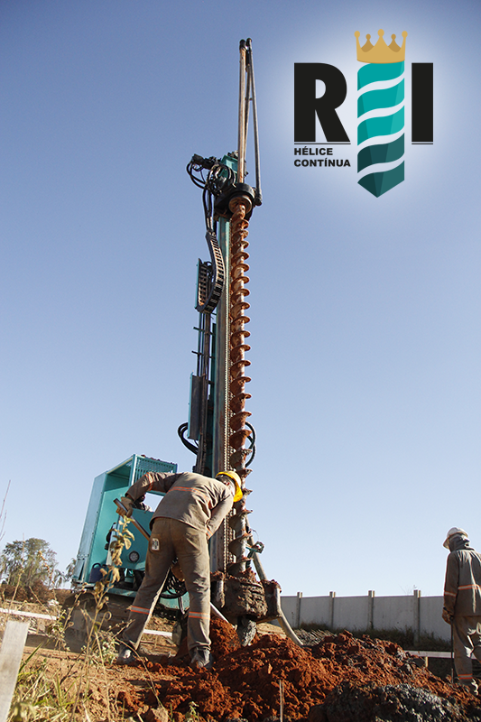 Execução de estaca hélice continua da terceira fase da Obra Minha Casa Minha Vida em Mogi Mirim−SP.