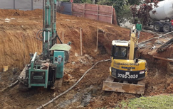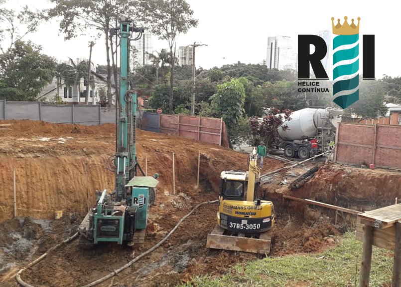 Realização de perfuração e fundação de estacas do tipo hélice contínua monitorada de pequeno porte para obra residencial no Condomínio Alphaville II na cidade de Barueri−SP.