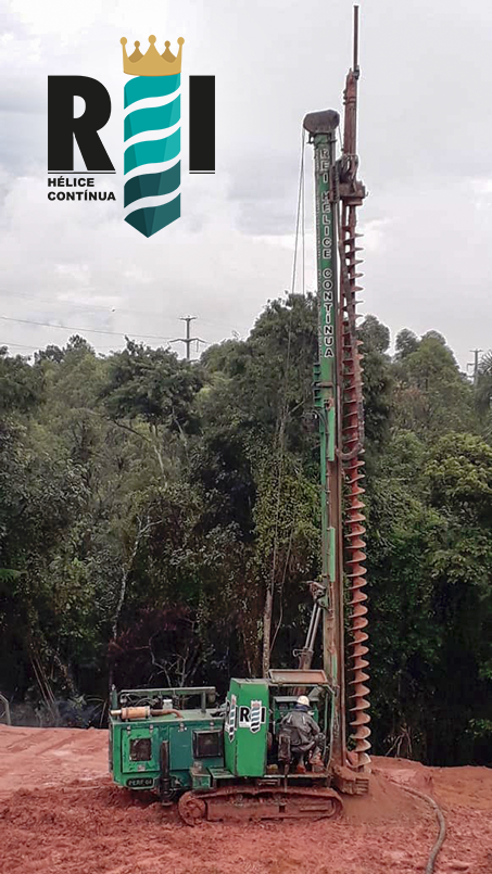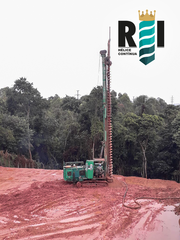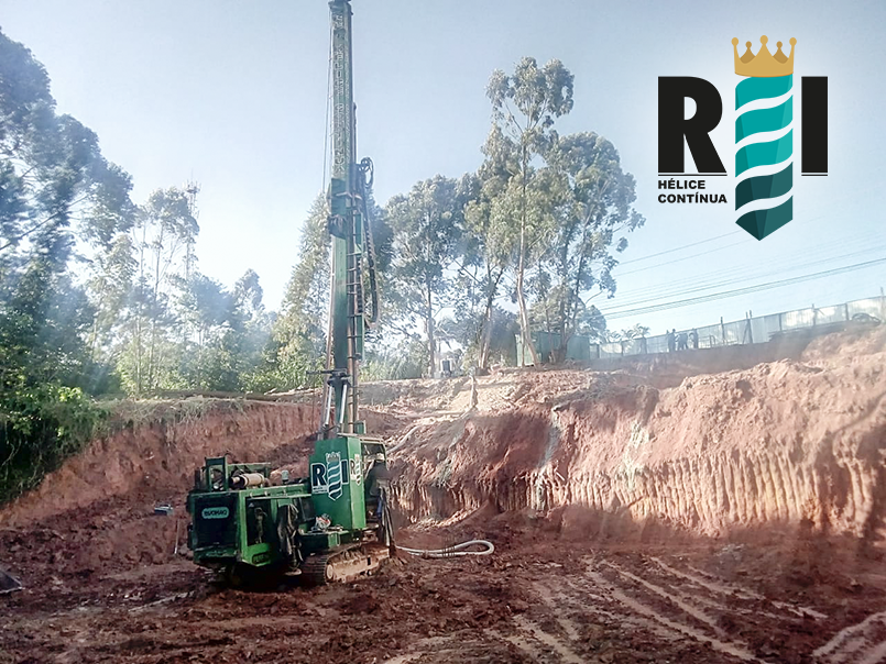 Execução de estaca hélice contínua de pequeno porte na cidade de Cotia−SP.