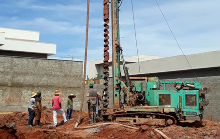 Execução de fundação com hélice contínua , projeto realizado em obra residencial no condomínio Grand Trianon localizado em Anápolis−GO.